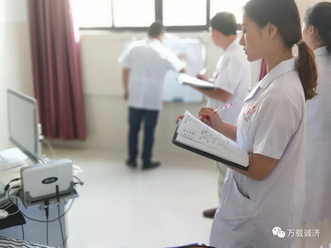 曾馨晨:“给患者做b超、心电图、TCD。简单来说就是仔细检查,然后作出正确的诊断。检查完毕,我们的工作只是完成了一半,所有的报告单都是要经过科学判断、去伪存真,细心编辑,一字一字打印出来的,要一张图一张图的分析,并做好思考记录,还要对比患者之前的超声检查结果或其他的影像学检查,最后给患者作出正确的诊断。"